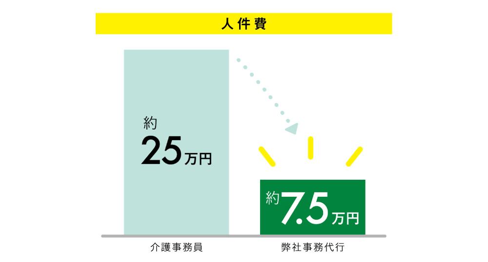 一般的な事務員1名の人件費(約25万円/月)と比べると、大幅にコストを抑えられる点が特徴です。