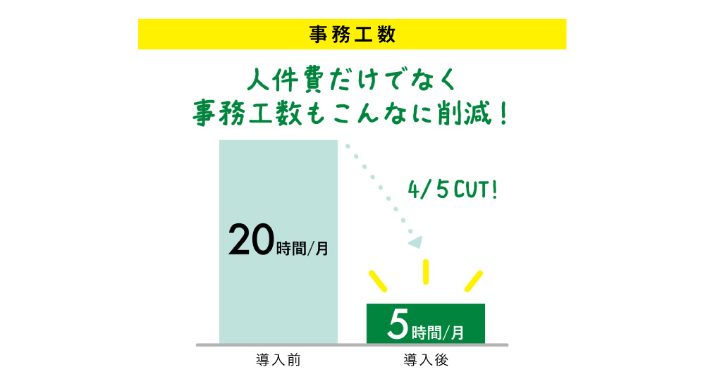 従来は月に約20時間かかっていた作業も、サービス導入後は月5時間まで短縮され、4分の3もの工数削減を実現いたします。